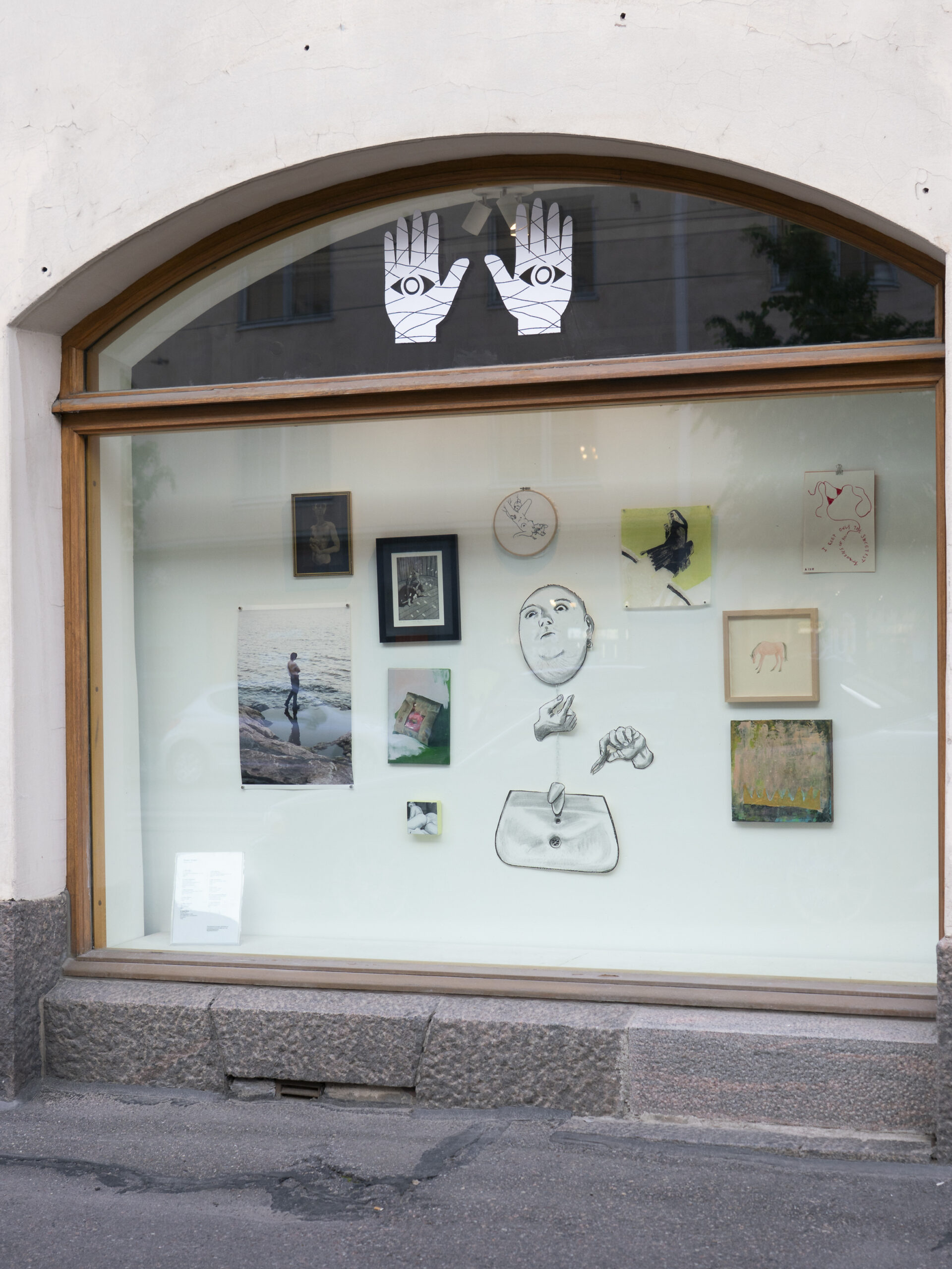 Installation view of the window exhibition Kvääri/Queer at Gallery Toinen Silmä, Helsinki, 2025